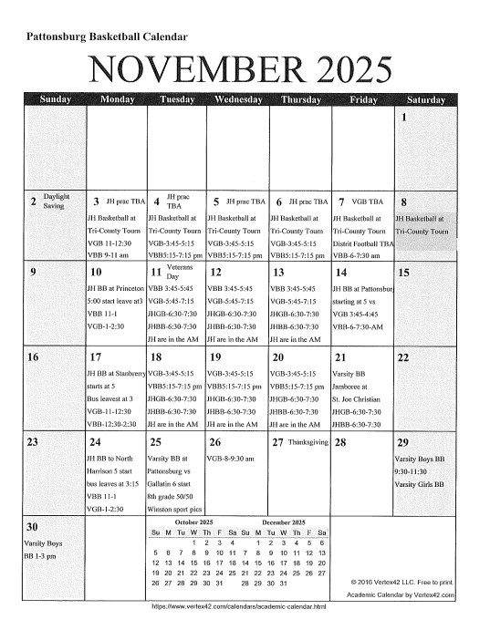 Basketball Calendar for November 2025